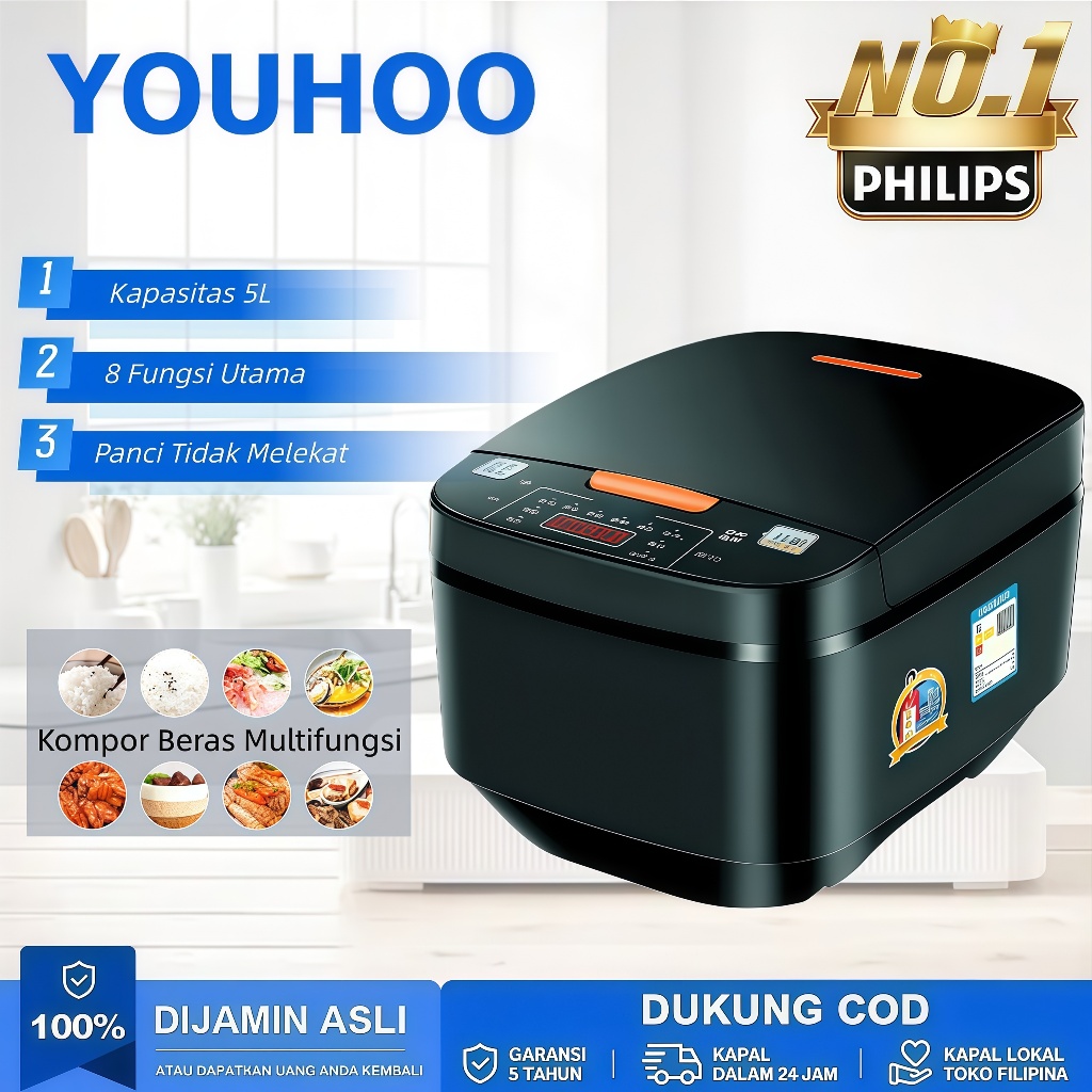 YOUHOO Rice Cooker 5L Magic Com 8 Mode Masak/Anti Lengket Smart Touch Penanak Nasi Multifungsi