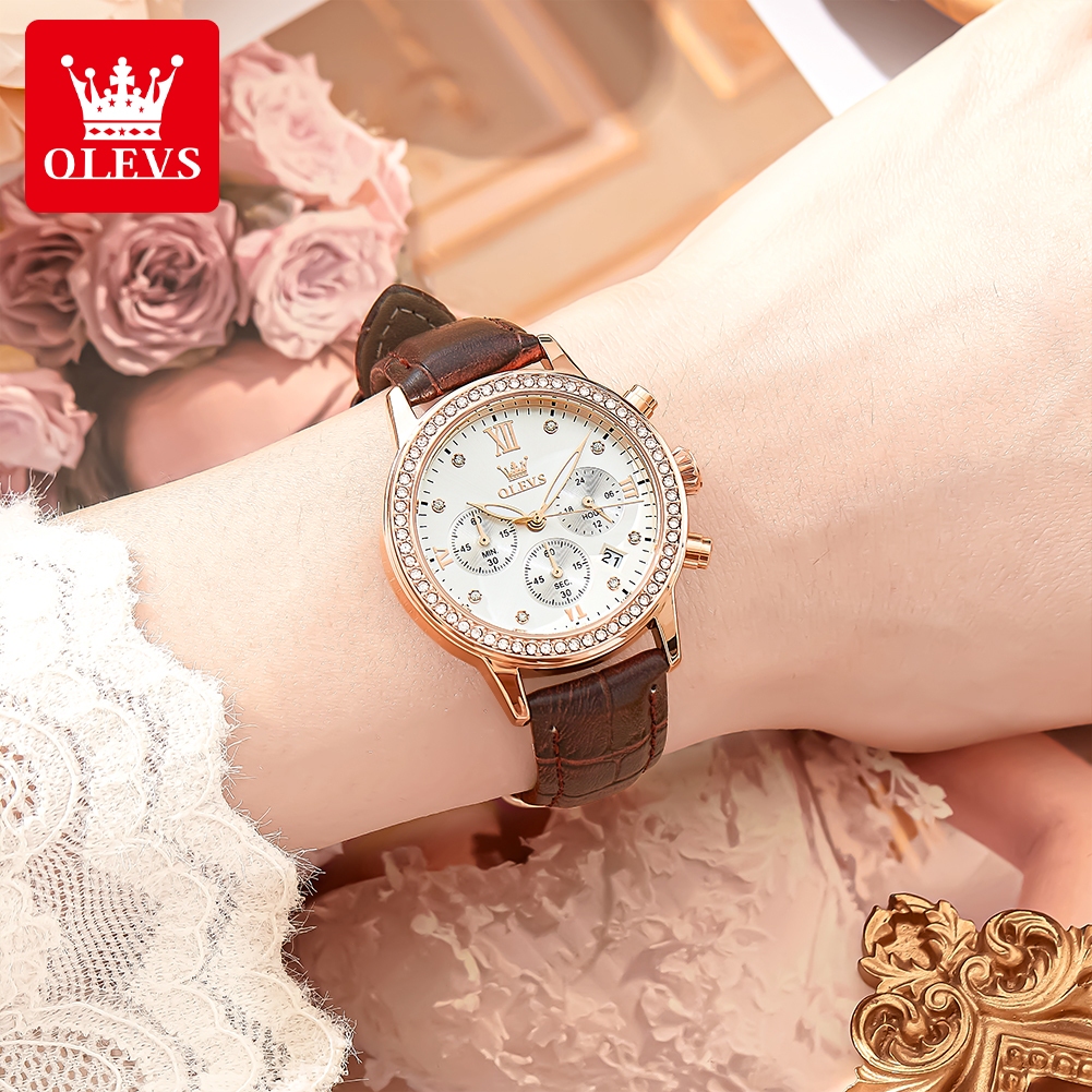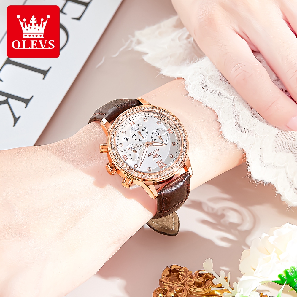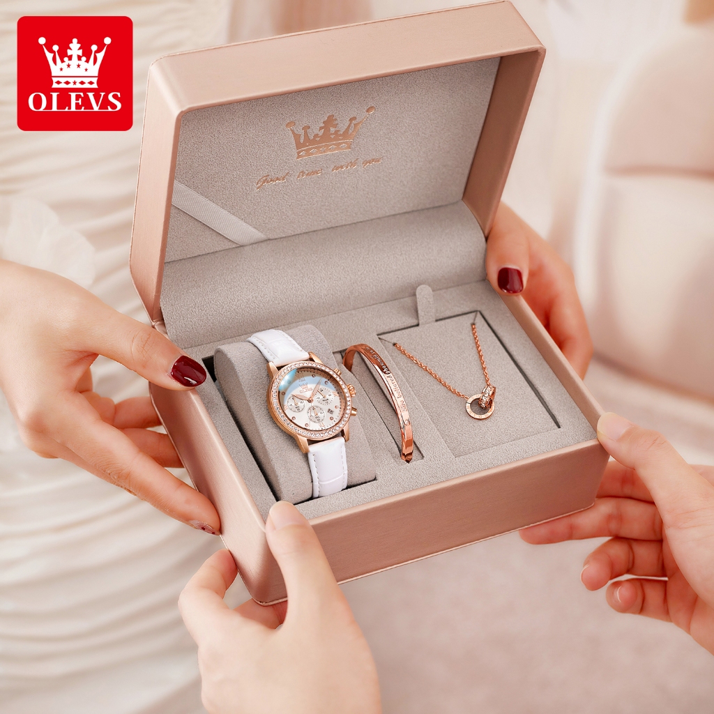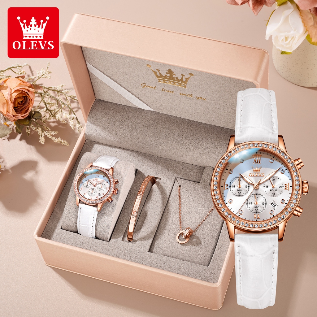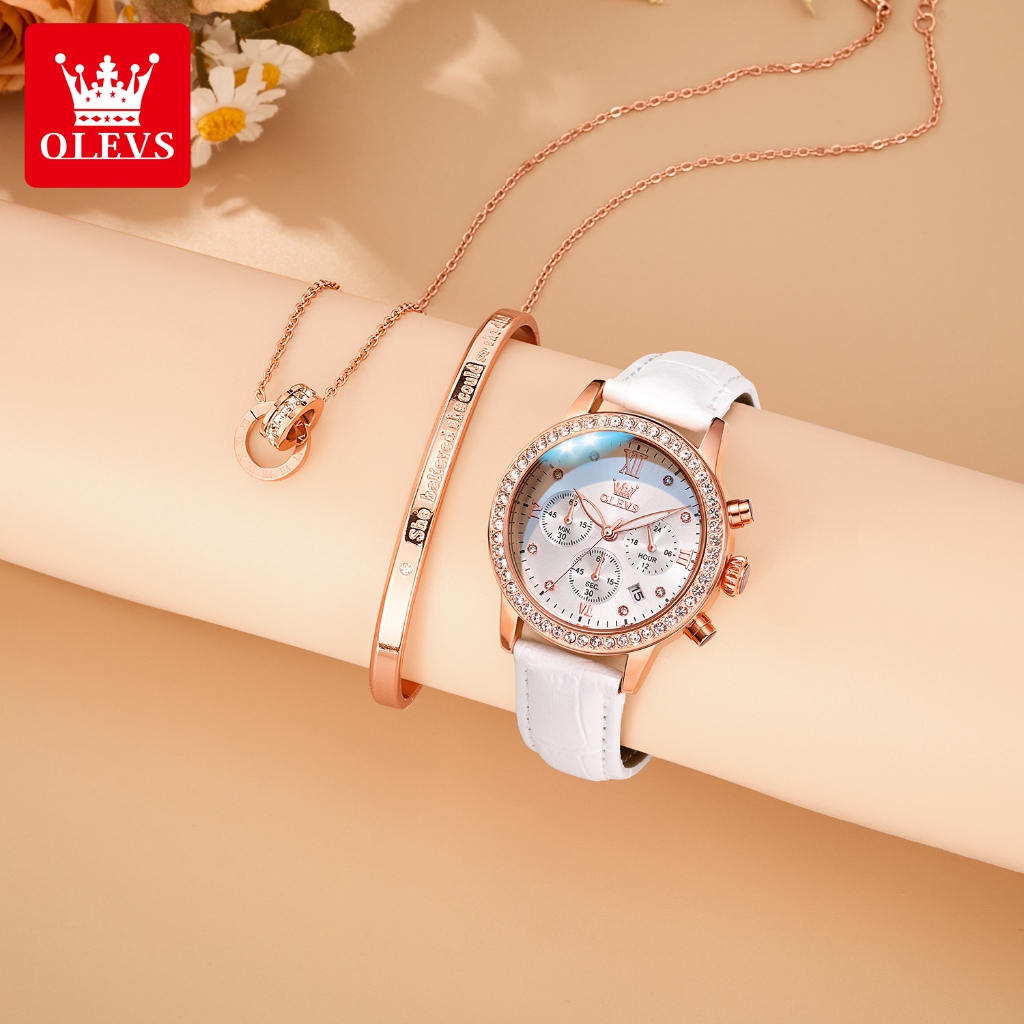 OLEVS Jam Tangan Wanita Anti Air Original Mewah Set Bercahaya Kalender Quartz Watch 9933