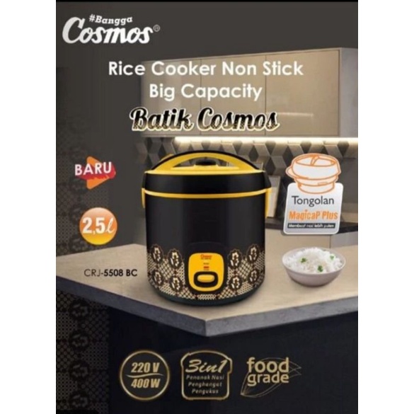 COSMOS : CRJ-5508BC RICE COOKER / MAGIC COM 3 IN 1 BIG CAPICITY 2,5 LITER CRJ 5508 BC