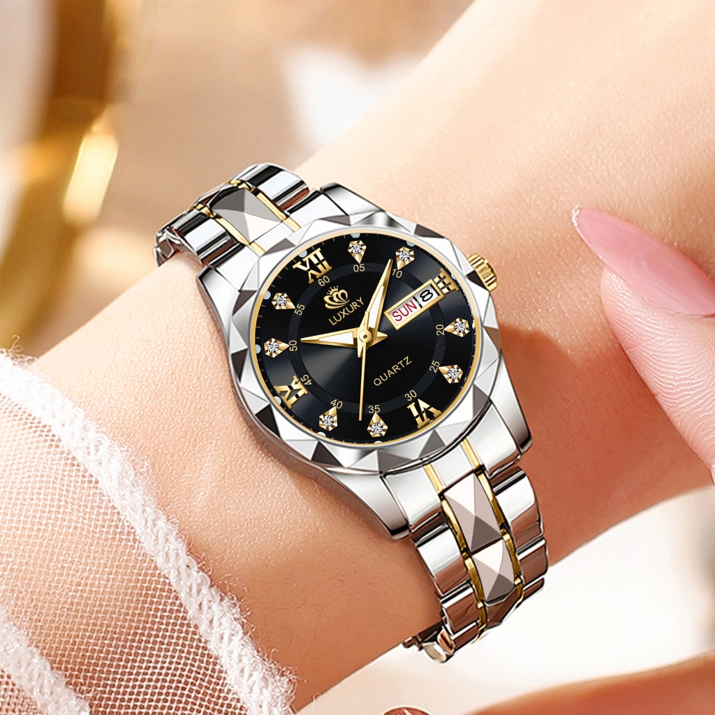 NEW Jam Tangan Wanita LUXURY Mewah Design Minimalis Tahan Air Kalender Aktif Rantai Anti Karat + Free Box
