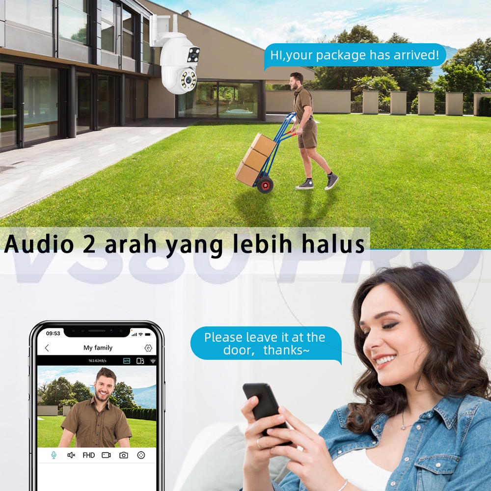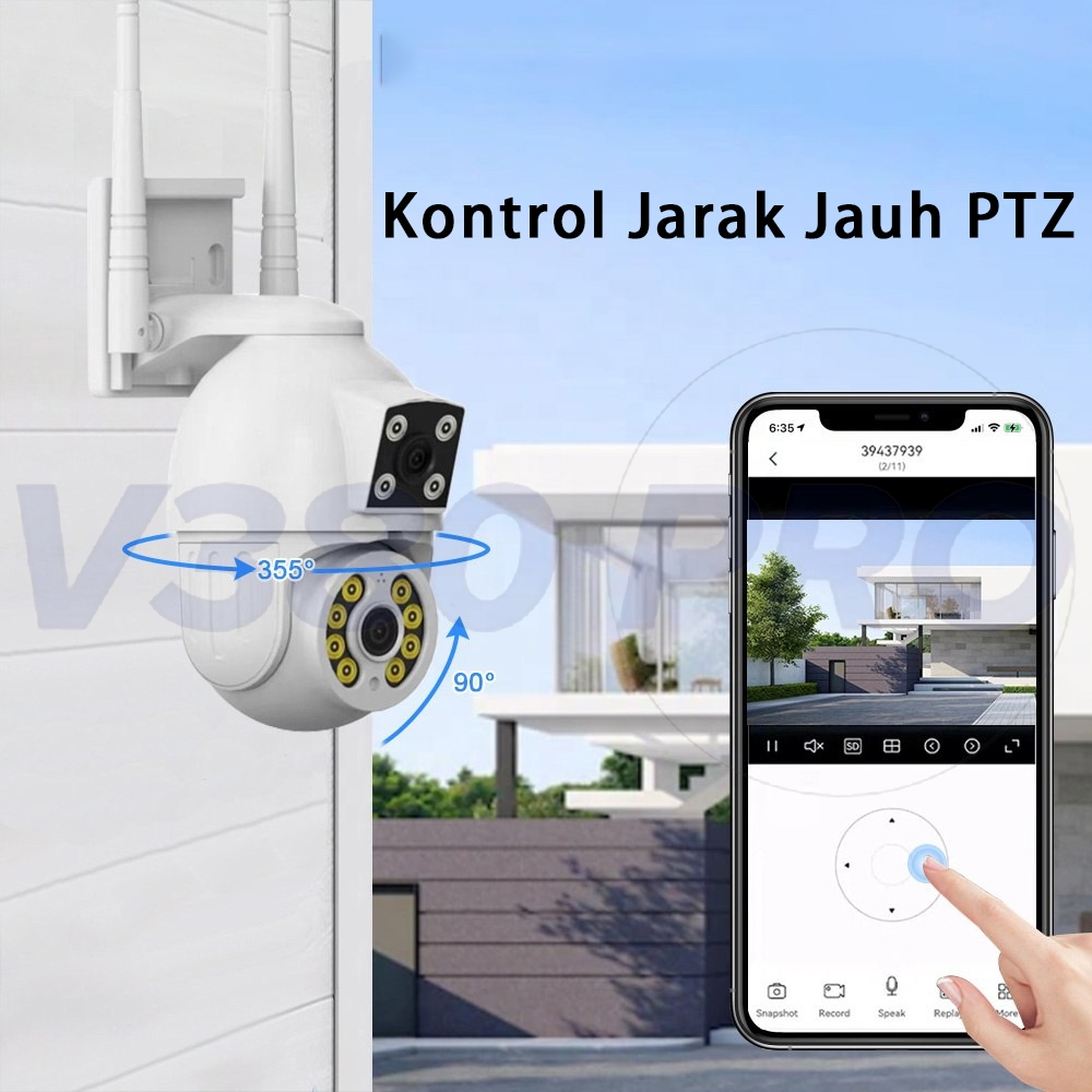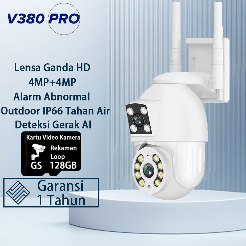 V380 Pro Kamera CCTV 8MP Lensa Ganda Layar Ganda Ai Kamera Pengintai Luar Ran Nirkabel Pelacakan