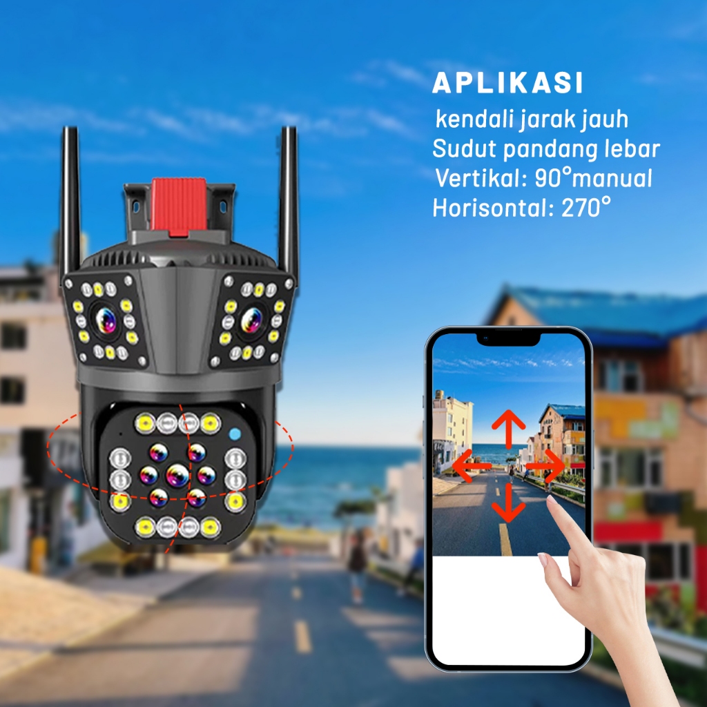Kamera CCTV V380pro ICSEE Wireless WiFi Alarm Deteksi IP66 Outdoor Waterproof Three-LensAI 360°PTZ Kamera CCTV Camera