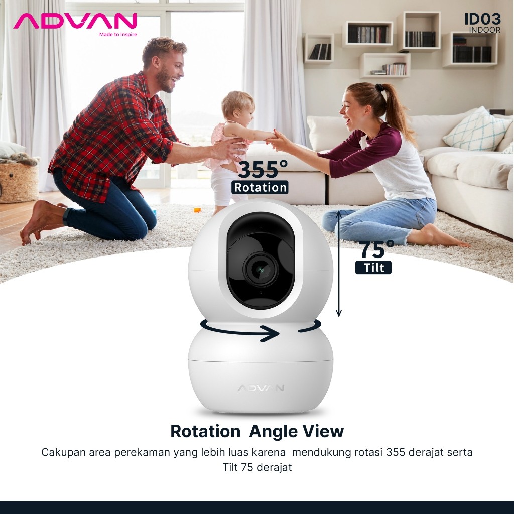 ADVAN ipcam ipc01 Smart AI CCTV Camera Indoor ID3 IP Cam 3MP 2 Wifi DVR Onvif PTZ Type C 1/3" CMOS