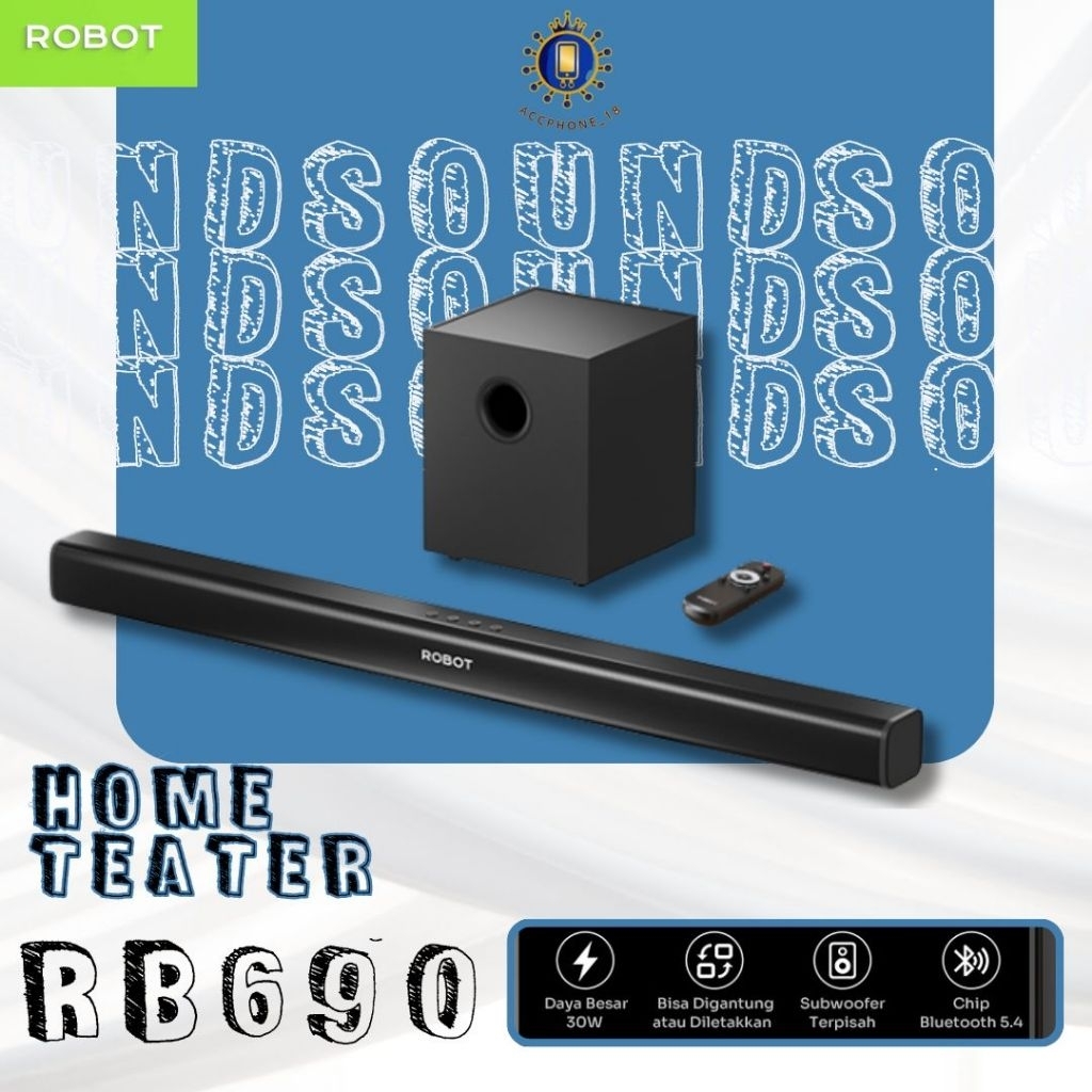 ROBOT -((RB690SW))- Subwoofer Home Theater 30W Bluetooth 5.4 TV Soundbar Speaker