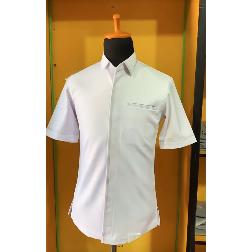 Kemeja Pria Putih Premium Exclusive Benang Smock Timbul Lengan Panjang dan Pendek