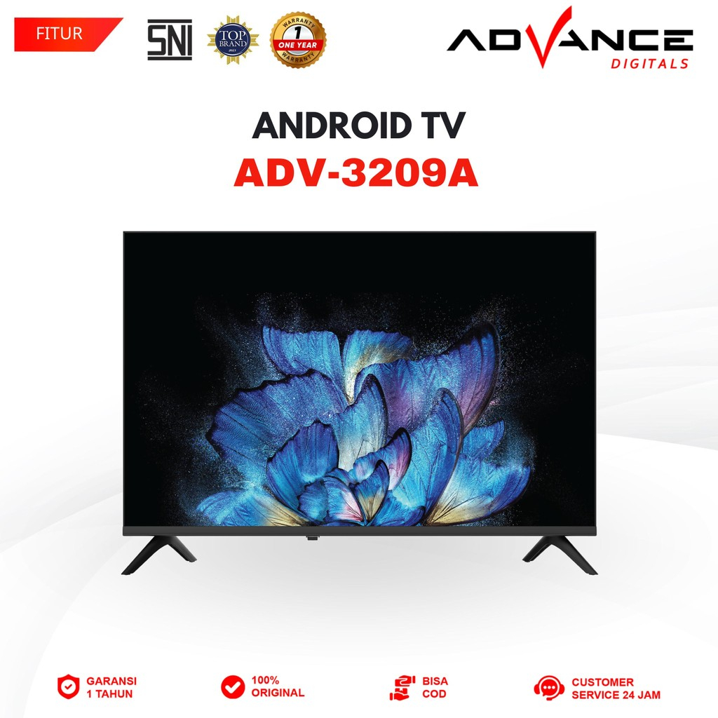 Advance ADV-3209A Android TV Smart TV Full HD 32 Inch WiFi LAN TV Digital DVB-T2 Garansi Resmi 1 Tahun Frameless