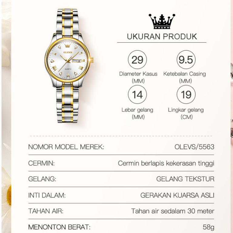 OLEVS Jam Tangan Wanita Korea Kecil Anti Air Original Cewek Kalender Luminous Women Watch 5563