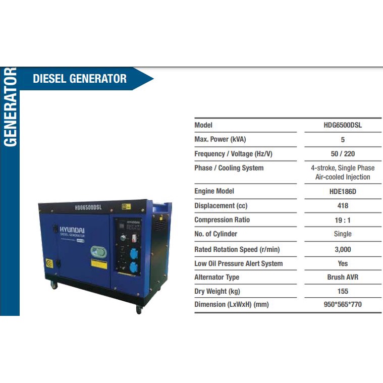 Genset Silent HYUNDAI HDG6500DSL 5000Watt / Generator Silent HDG 6500 DSL HYUNDAI 5000W