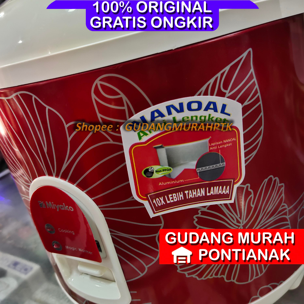 Ricecooker Miyako ANTI LENGKET NANOAL 2Liter JUMBO PANCI BESAR Penanak nasi magicom pengukus 558 SBC