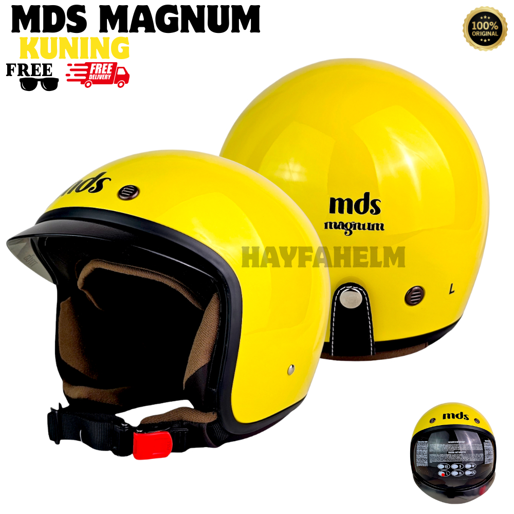 Helm half face MDS MAGNUM Warna Kuning || Helm Retro SNI ORIGINAL
