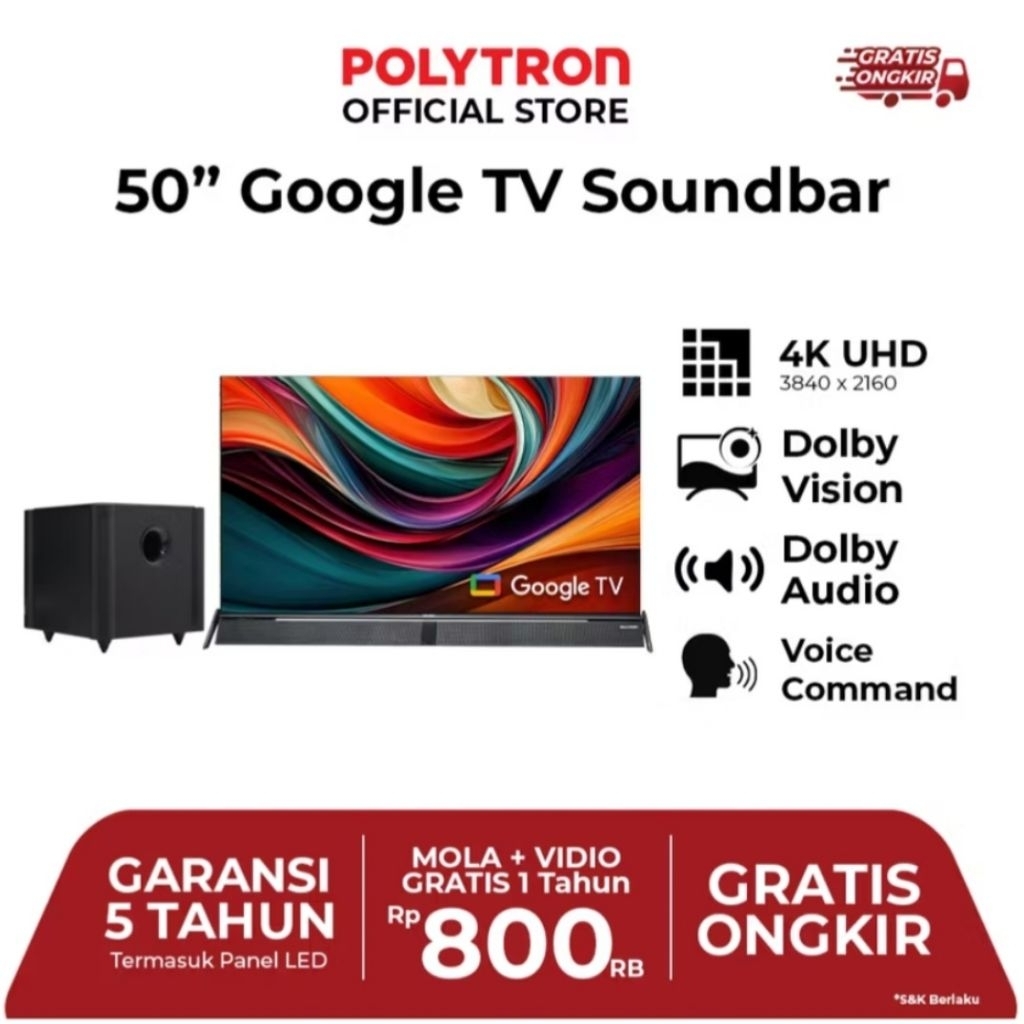 POLYTRON 4K HDR Smart Google Soundbar TV 50 inch PLD 50BUG5058 / 50BUG9959 / 50BUG5959