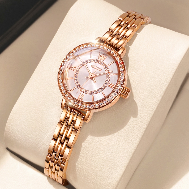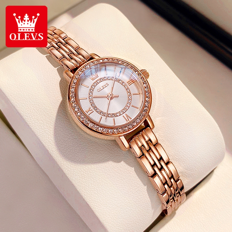 OLEVS Jam Tangan Wanita Anti Air Kecil Original Rantai Terbaru 2025 Korea Elegan Analog Quartz Branded Rose Women W