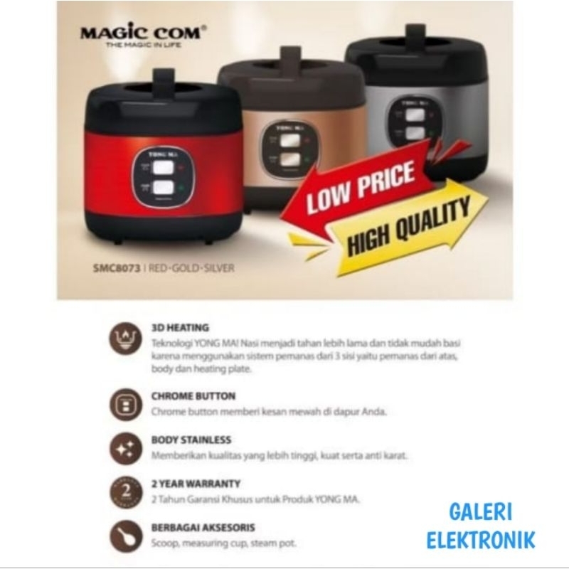 Yongma magic com/penanak nasi/rice cooker 2lite smc 8073