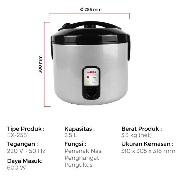 Magic Com Besar Maspion 2,5L Ex 2581 Rice Cooker Jumbo Ex2581 2,5Liter