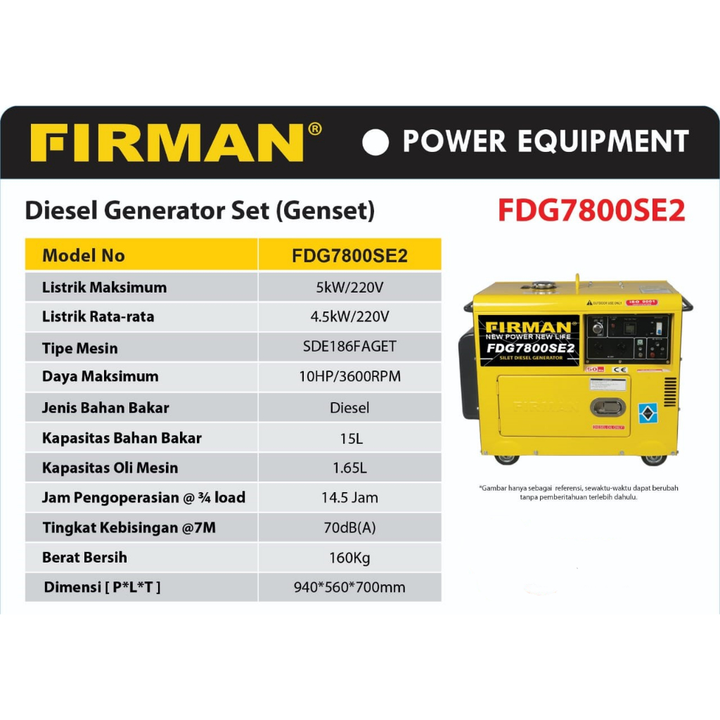 Genset Listrik Silent 5000Watt FIRMAN FDG7800SE2 / Power Generator Diesel Solar 5000 Watt FDG 7800 SE2 FIRMAN