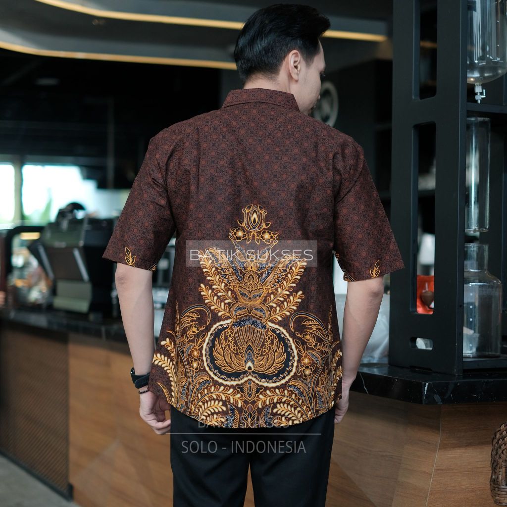 BATIK SUKSES - RAFFLESIA COKLAT MAHOGANY Kemeja Baju Batik Pria PREMIUM Lengan Pendek LAPIS FURING Katun Halus Primisima