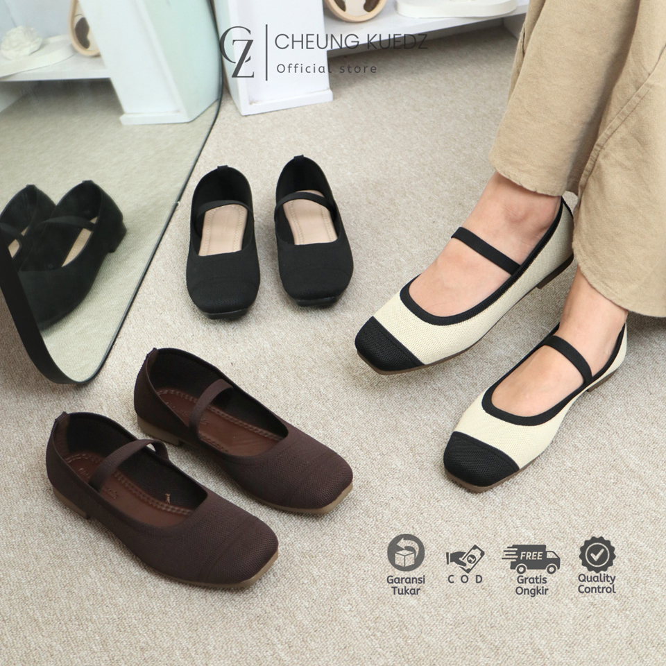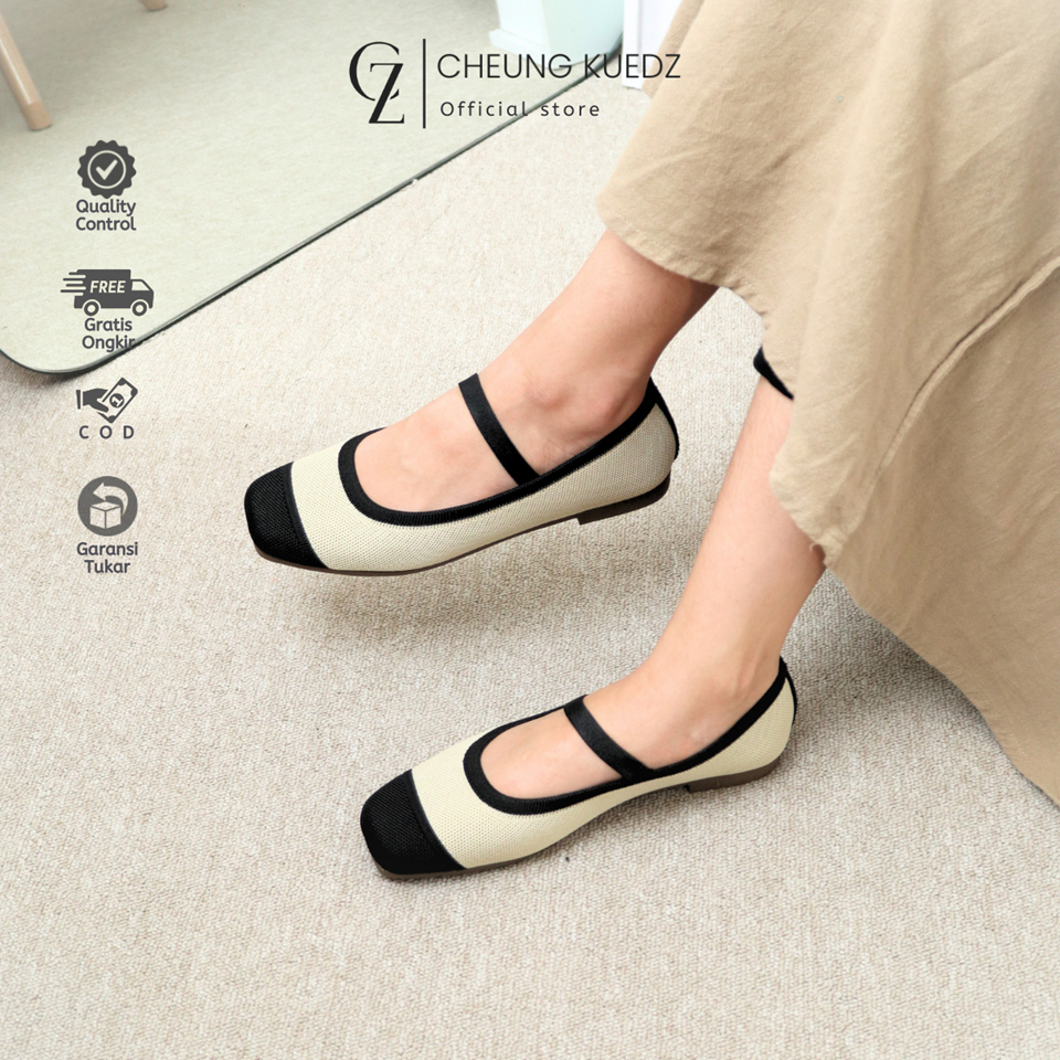 Cheung Kuedz Poppy Flat Shoes Knit Wanita Mary-Jane Square Toe