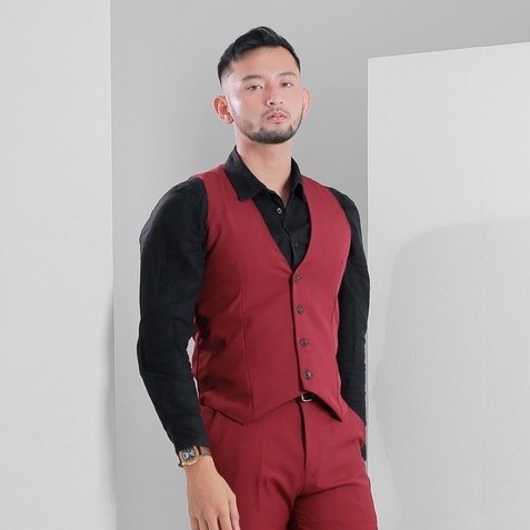 Goldy Outfit Setelan Jas Celana & Rompi Merah Maroon - Vente Series