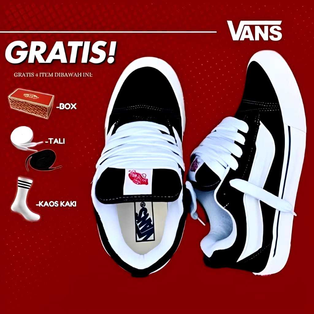 Promo Sepatu Van's knu Skool Black White Men Women - Sepatu Gemuk IMPORT QUALITY