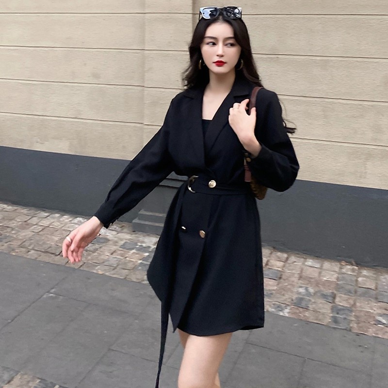 Newlan WT017 musim gugur baru jas 2023 mid-length double-breasted kerah longgar atas pakaian wanita trend Coat wanita te