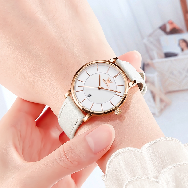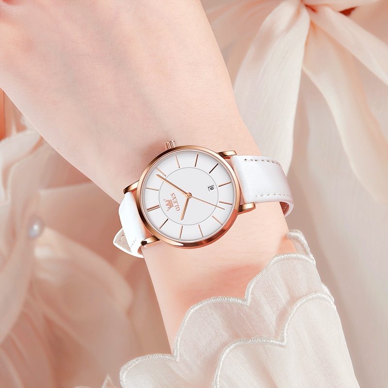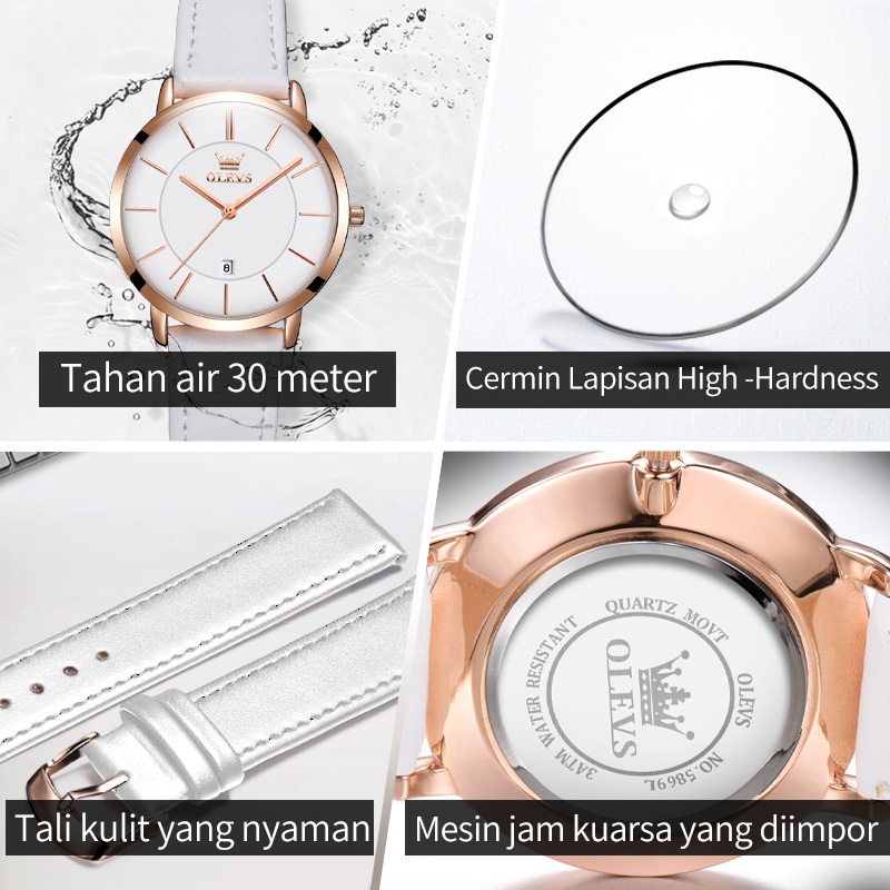 OLEVS Jam Tangan Wanita Anti Air Original Unik Luxury Kulit Tipis Putih Women Watch 5869