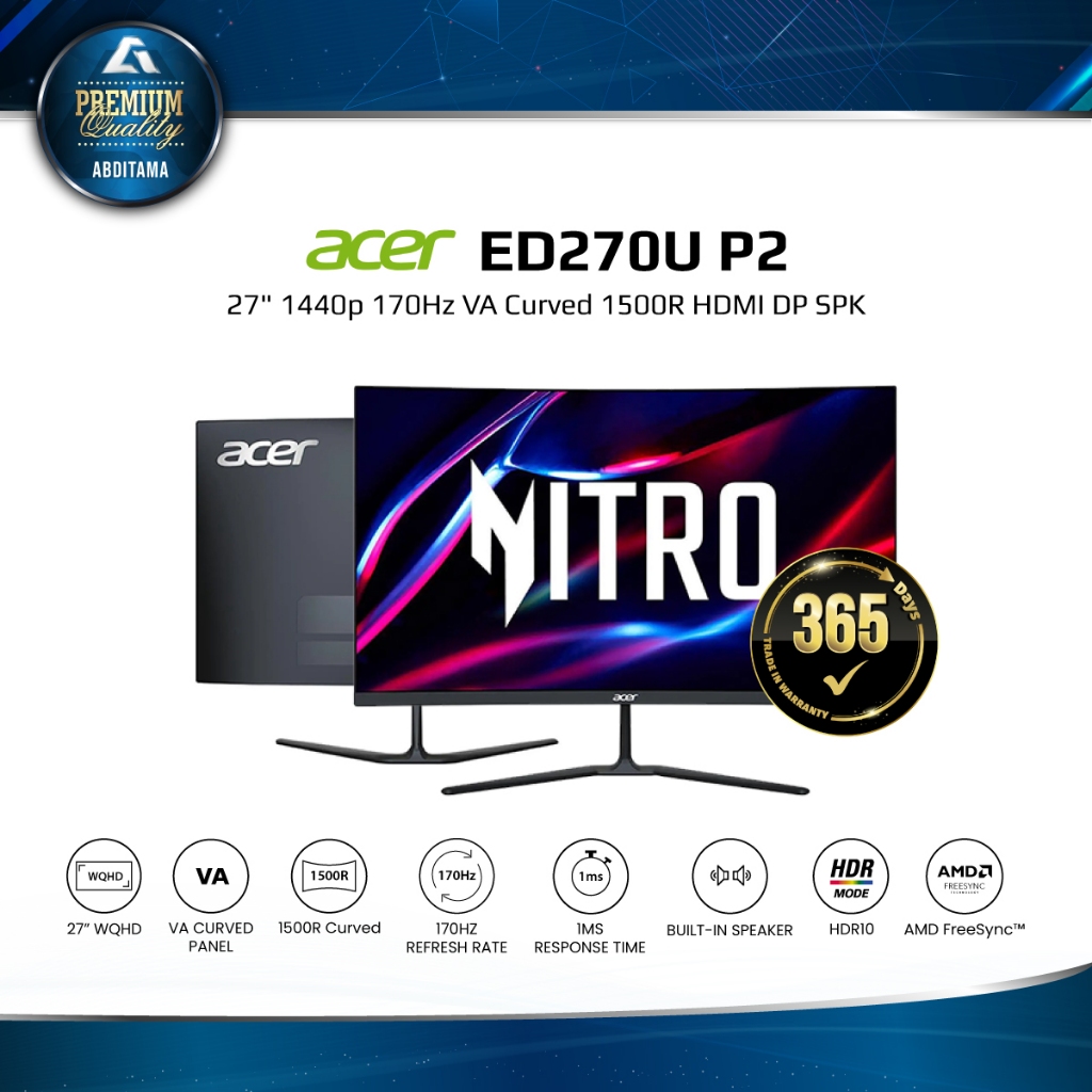 Monitor LED ACER ED270U P2 27" 1440p 170Hz VA Curved 1500R HDMI DP SPK