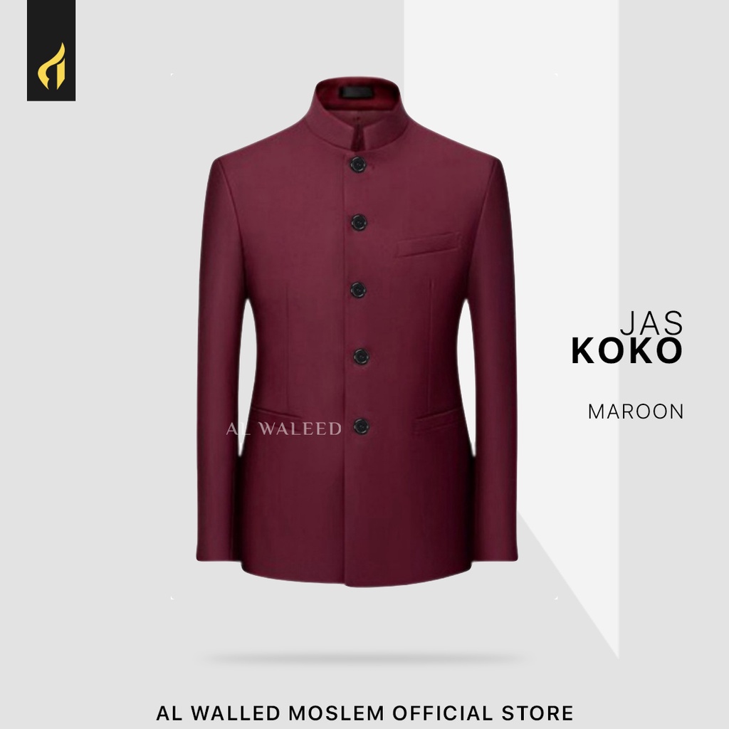 Alwaleed Moslem Jasko/Jas mandarin - Jas Koko Pria Modern Warna Maroon