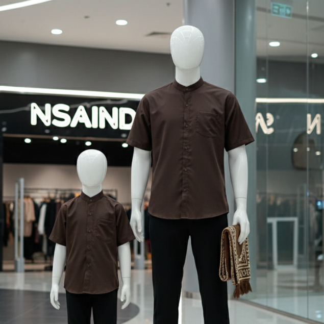 Nsa Ind Kemeja Koko Couple Dewasa Anak coklat mahogany