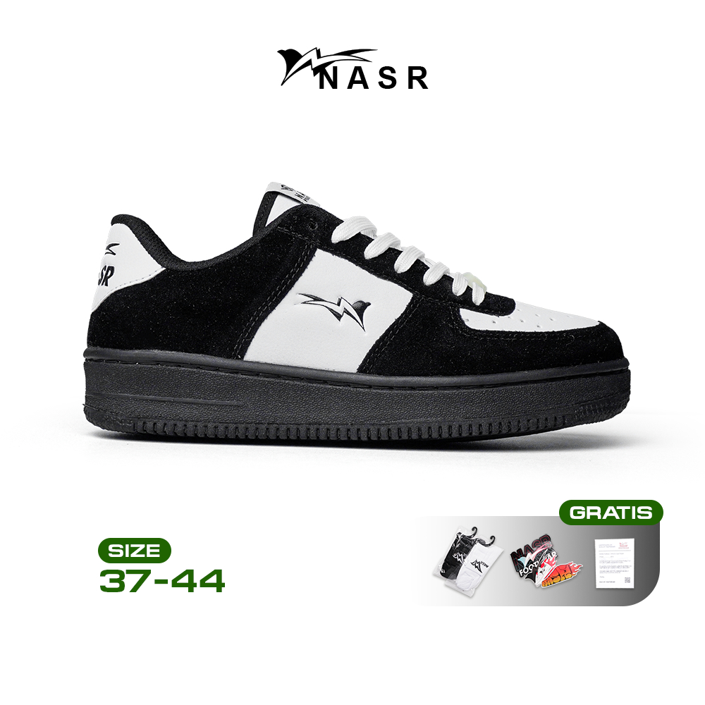 Nasr - Sepatu Sneakers kasual Pria Wanita Elegan Panda Sol Black