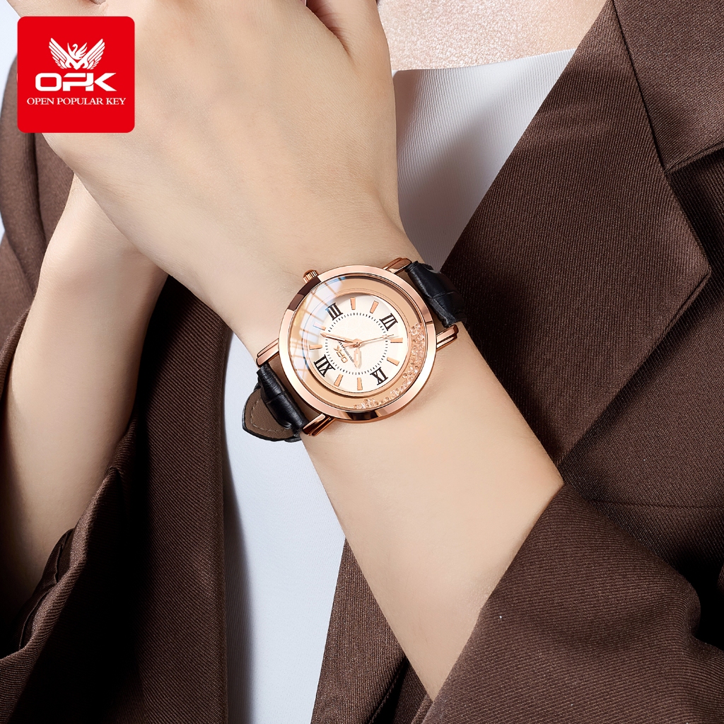 OPK Jam Tangan Wanita Original Anti Air Terbaru Tahan Cewek Korean Aesthetic Style Kecil Elegan Kulit Luminous Analog Qu