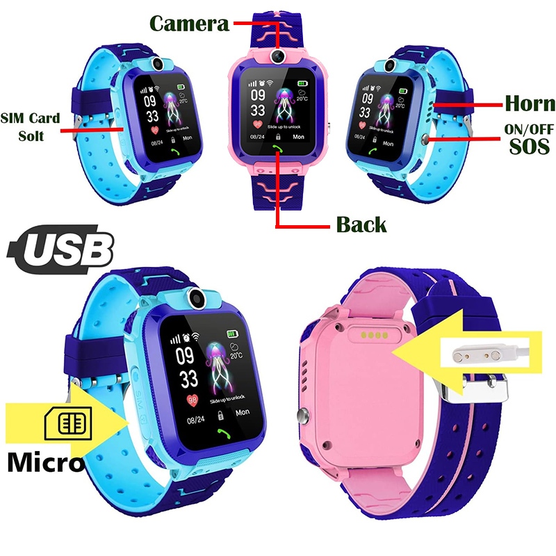 Q12 Anti Air IP67 tangan anak telepon/Smartwatch Jam tangan anak untuk telepon-Gps Digital Waterproof Kids Smart Wat