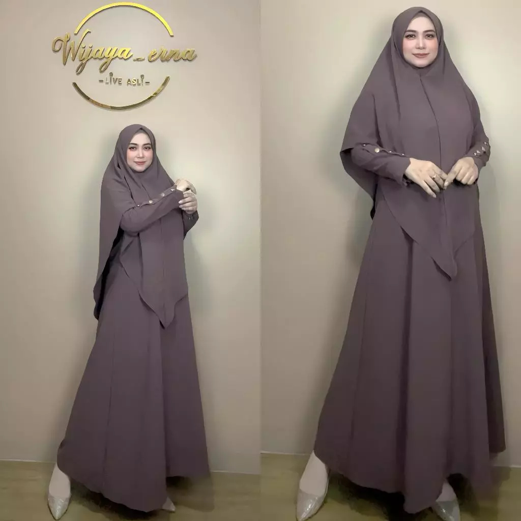 Setelan Abaya Aulia Marbela Anti UV Gamis cadar Set Syari Besic Umroh Pengajian Tangan Kancing
