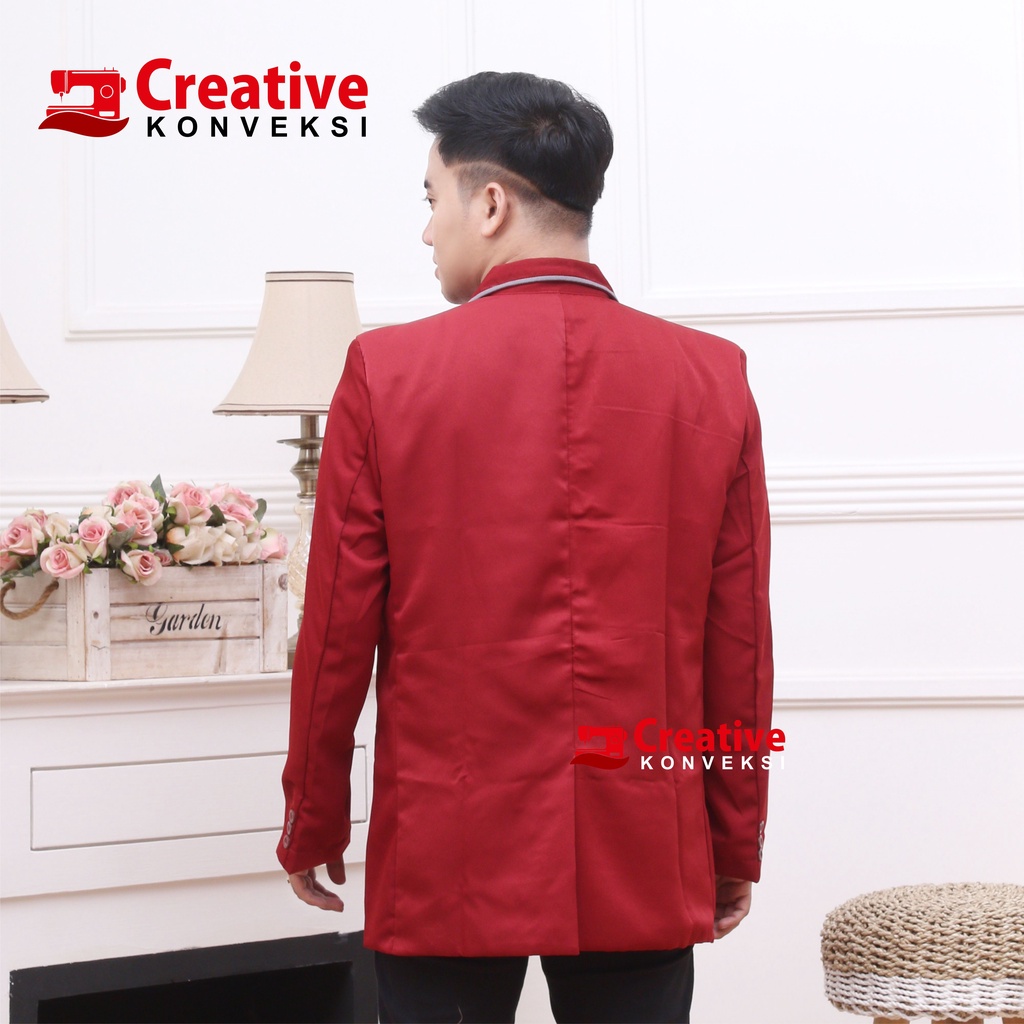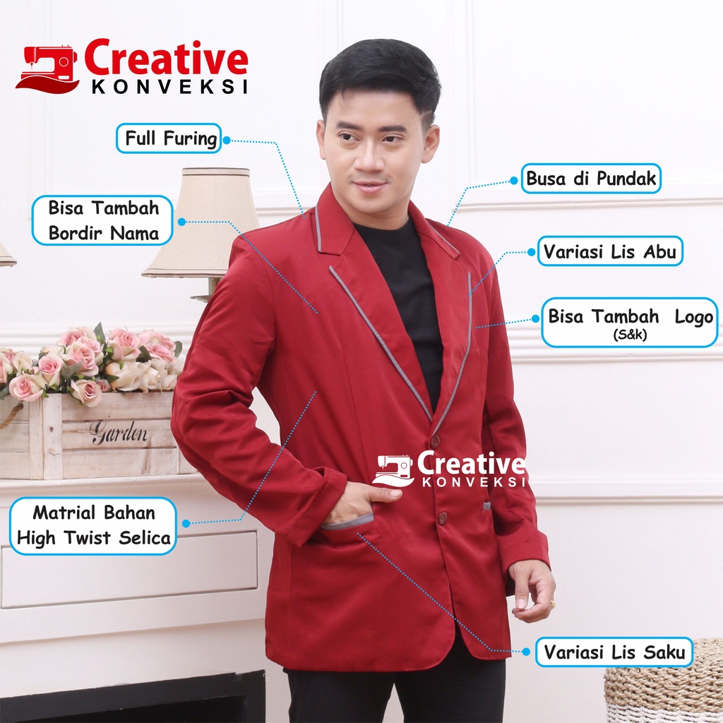 JAS ALMAMATER MERAH maroon LIST ABU / JAS PONDOK pesantren / blazer sekolah / jas maroon osis / jas pengajian komunitas
