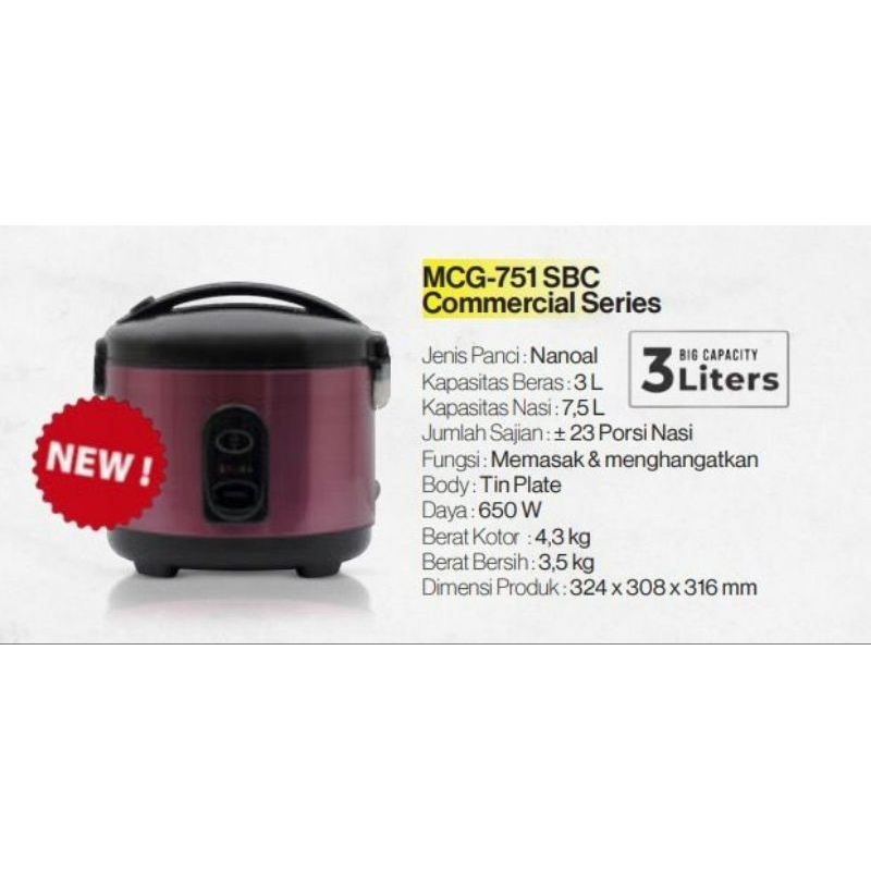 Magic Com Miyako MCM-751 SBC 3 L Liter Rice Cooker 751SBC Nanoal Commercial Garansi Resmi Original