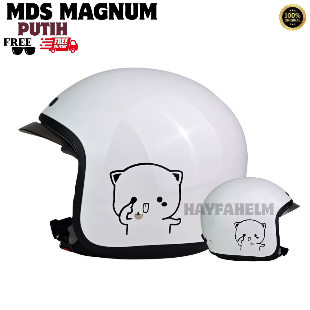Helm MDS Magnum Retro Bogo Solisd Warna Grey Glossy Mochi Original SNI-HELM HALFFACE