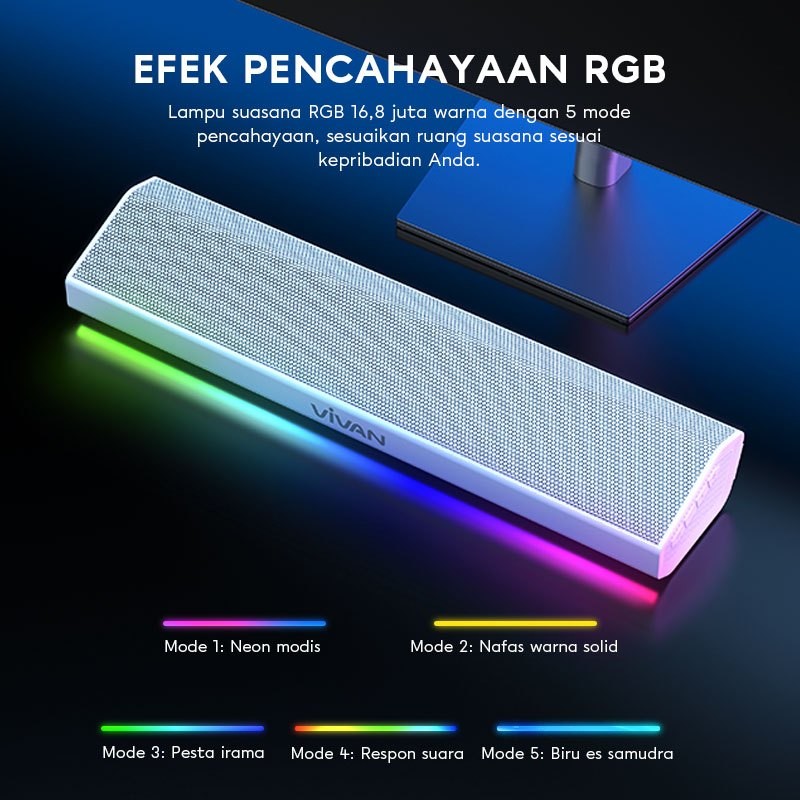 VIVAN Bluetooth Soundbar TV Super Bass RGB LED Lampu TWS Interkoneksi BT 5.4 S2 Garansi 12 Bulan