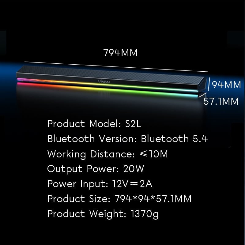 VIVAN Bluetooth Soundbar TV Super Bass RGB LED Lampu TWS Interkoneksi BT 5.4 S2L Garansi 12 Bulan