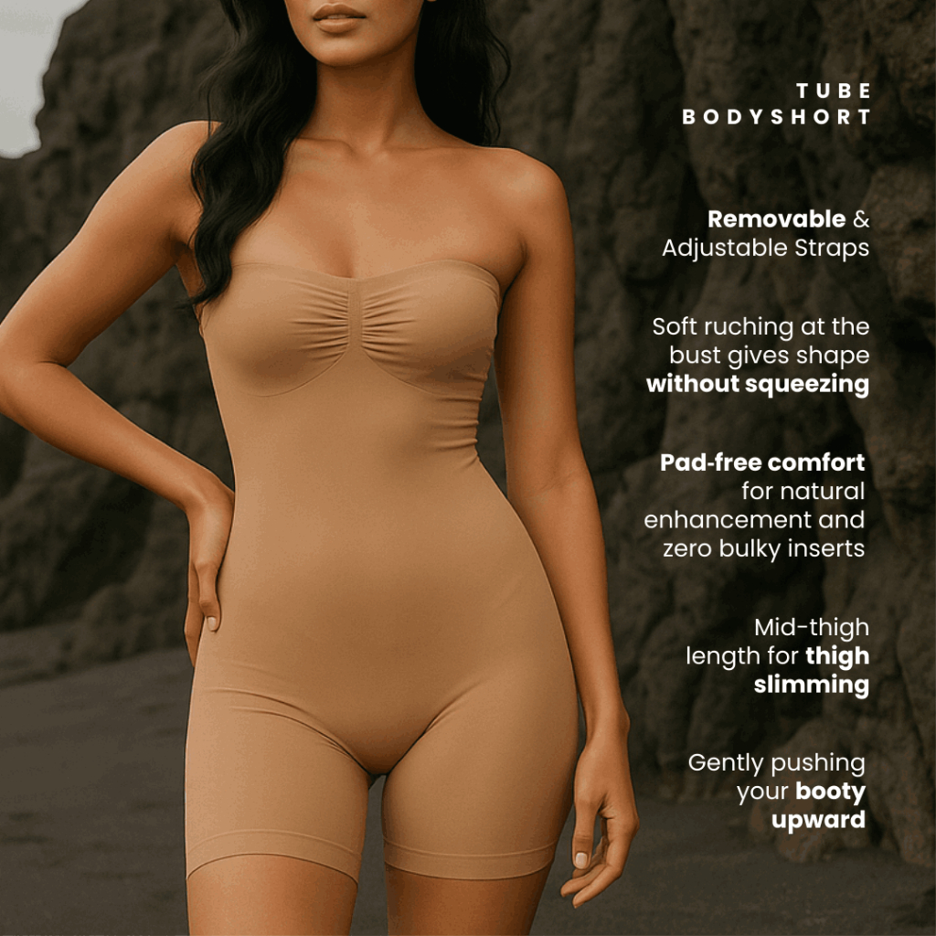 CORSHAX Sculpting Tube Bodyshort With Peehole Crotch Tummy Control Removable Strap Shapewear