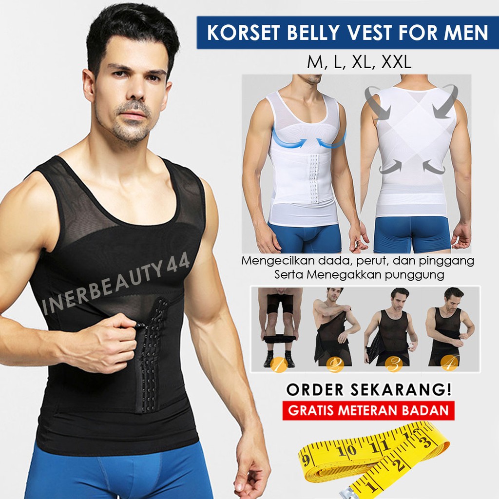 Korset Pria belly vest for men Pelangsing perut punggung memperbaiki postur tubuh dan meratakan dada