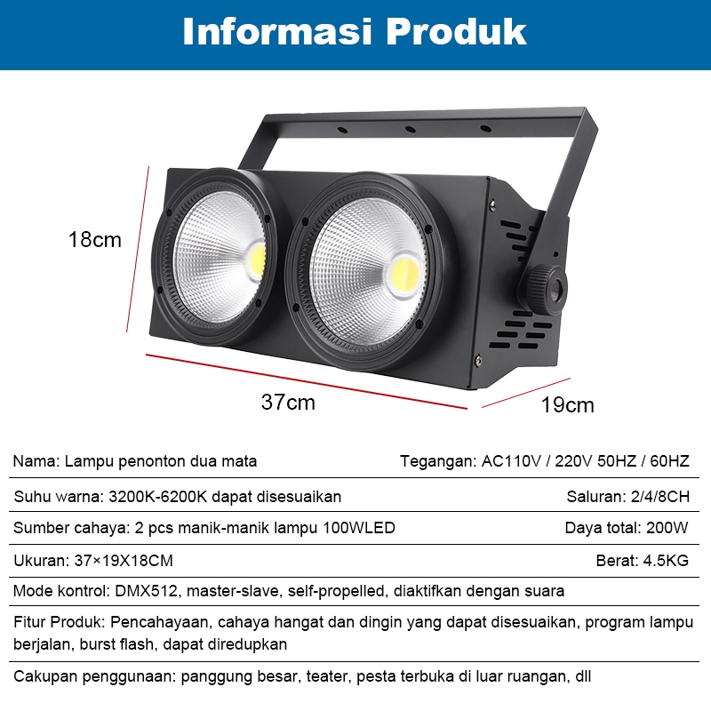 [Ready & ] Lampu Disco Sorot Panggung Mini Brute COB 2x100Watt 2 Mata Laser Animation RGB LED - Bagus untuk Night Club,