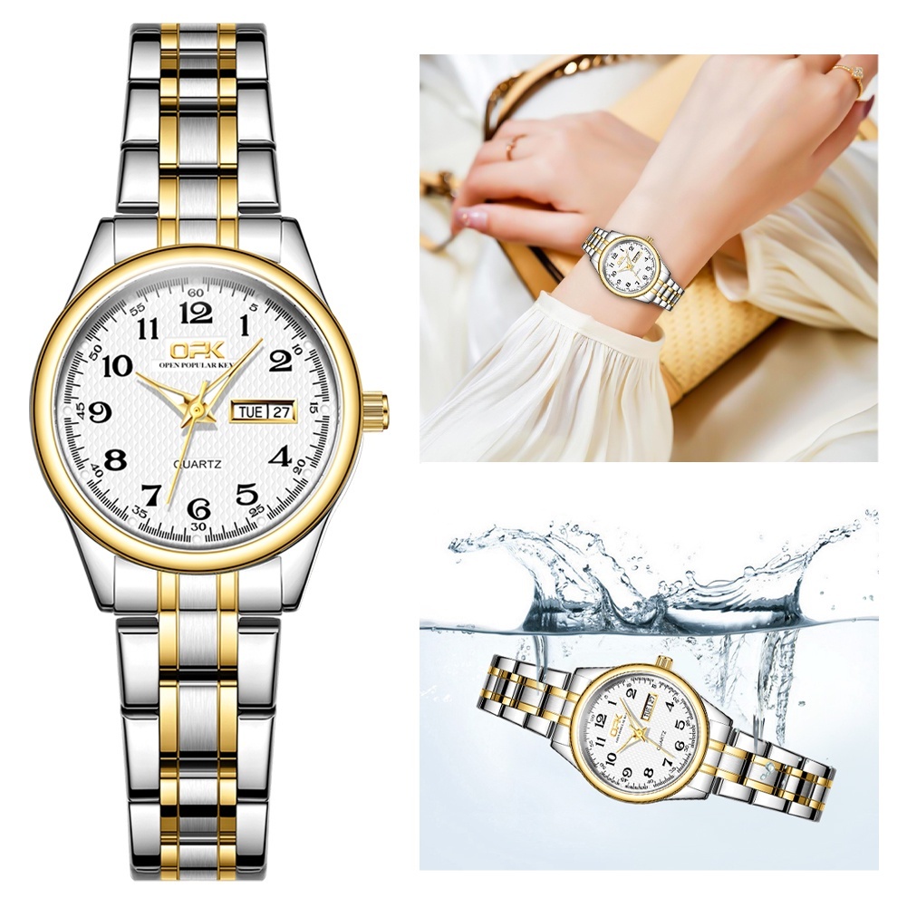 OPK Jam Tangan Wanita Original Untuk Asli Tahan Air Stainless Steel Date Luminous Quartz Fashion Women Watch el 8110
