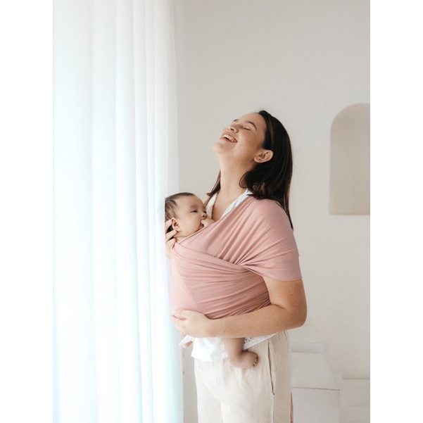Mikhadou Stretchy Wrap - Gendongan Bayi M Shape Rosedust- Baby Carrier