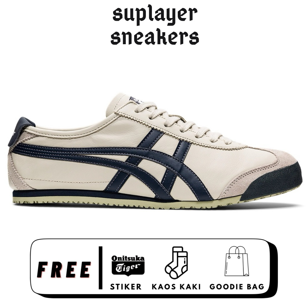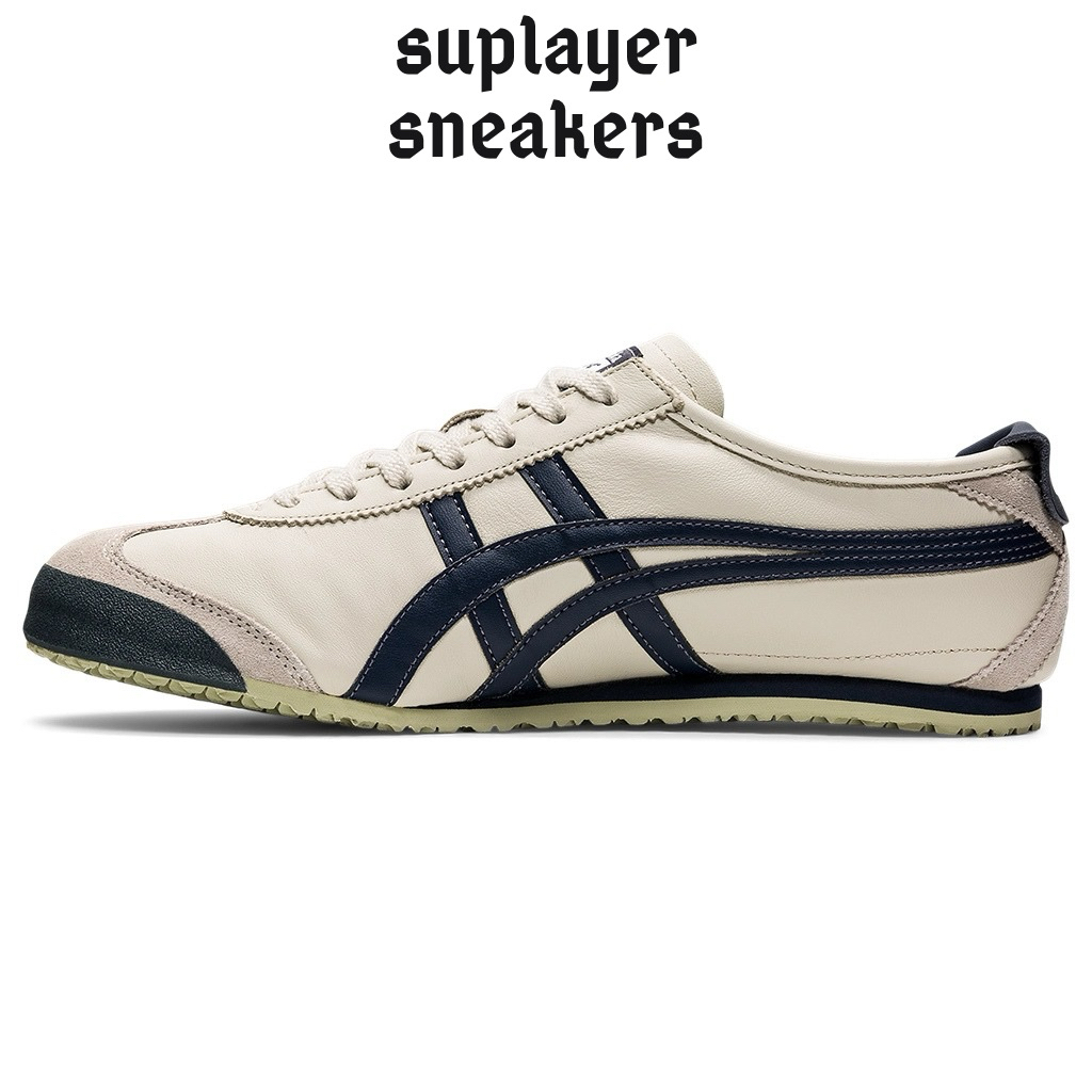 Sepatu Onitsuka Tiger Mexico 66 Leather Cream Navy Sepatu Pria Wanita Sneakers Casual Keren Terlaris BNIB