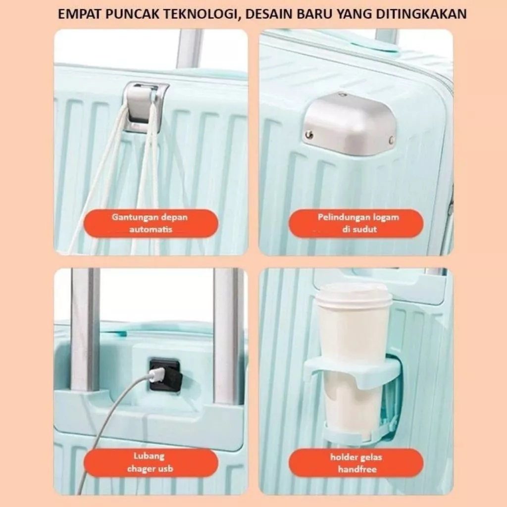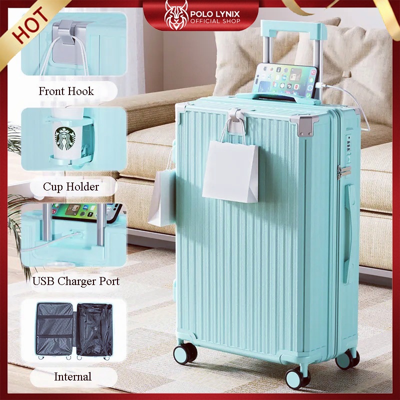 BEST SELLER Koper USB Charger + Cup Holder TSA Lock Kabin & Bagasi 20/24/28 Inch Ringan Anti Bentur
