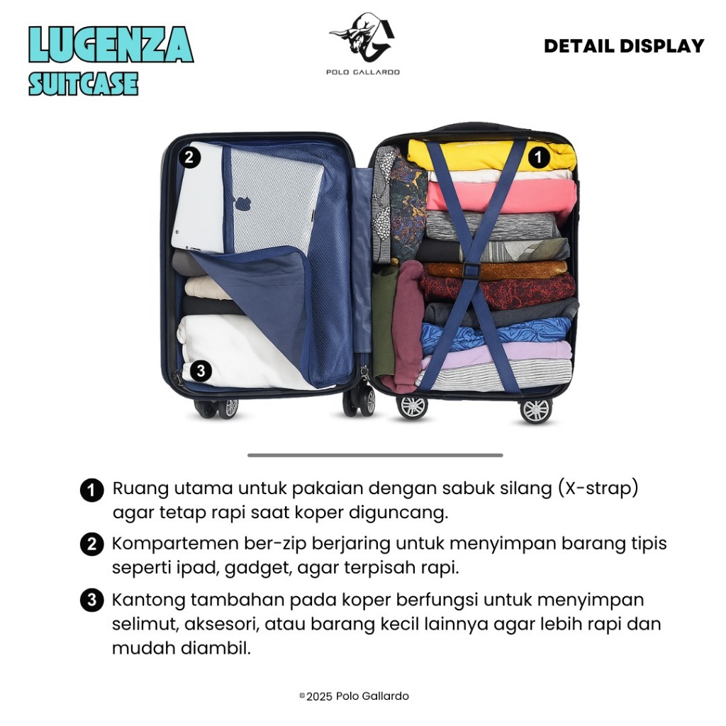 Polo Gallardo Koper 20 Inch & 24 Inch Size Cabin Dan Bagasi Hardcase Fiber ABS