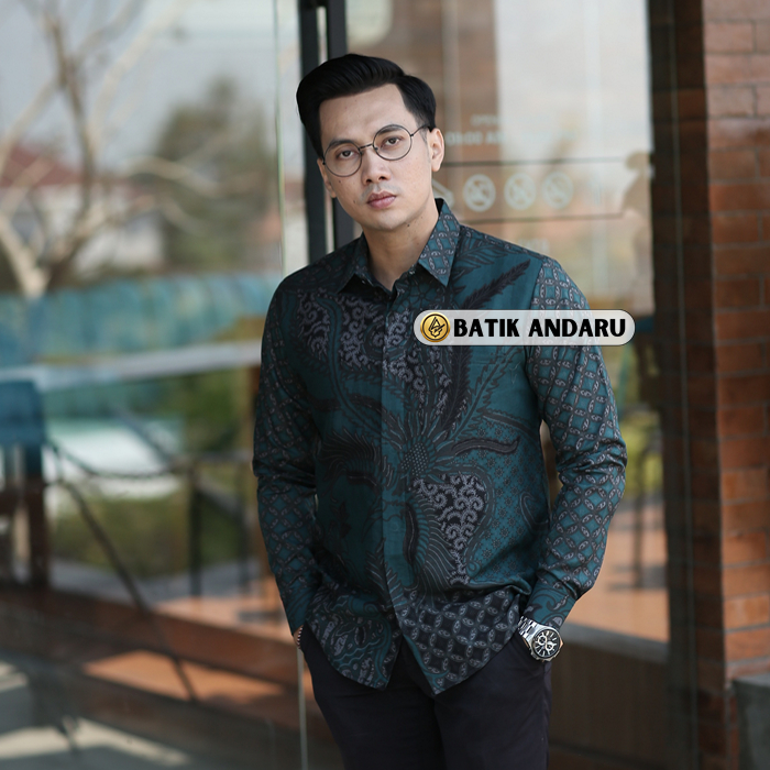 Batik Andaru Motif Laksmi Baju Batik Pria Lengan Panjang Premium Slimfitting Full Furing Bahan Katun Warna Hijau Botol