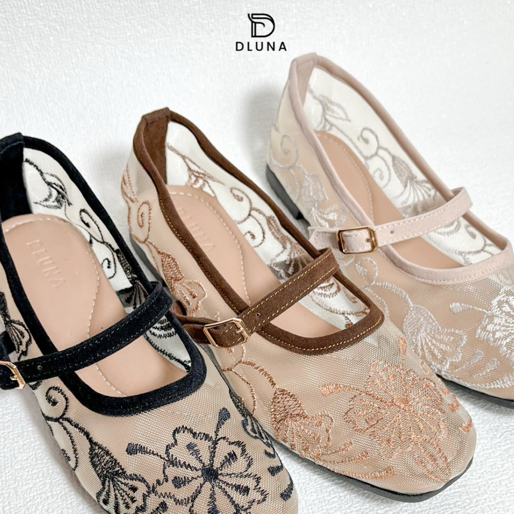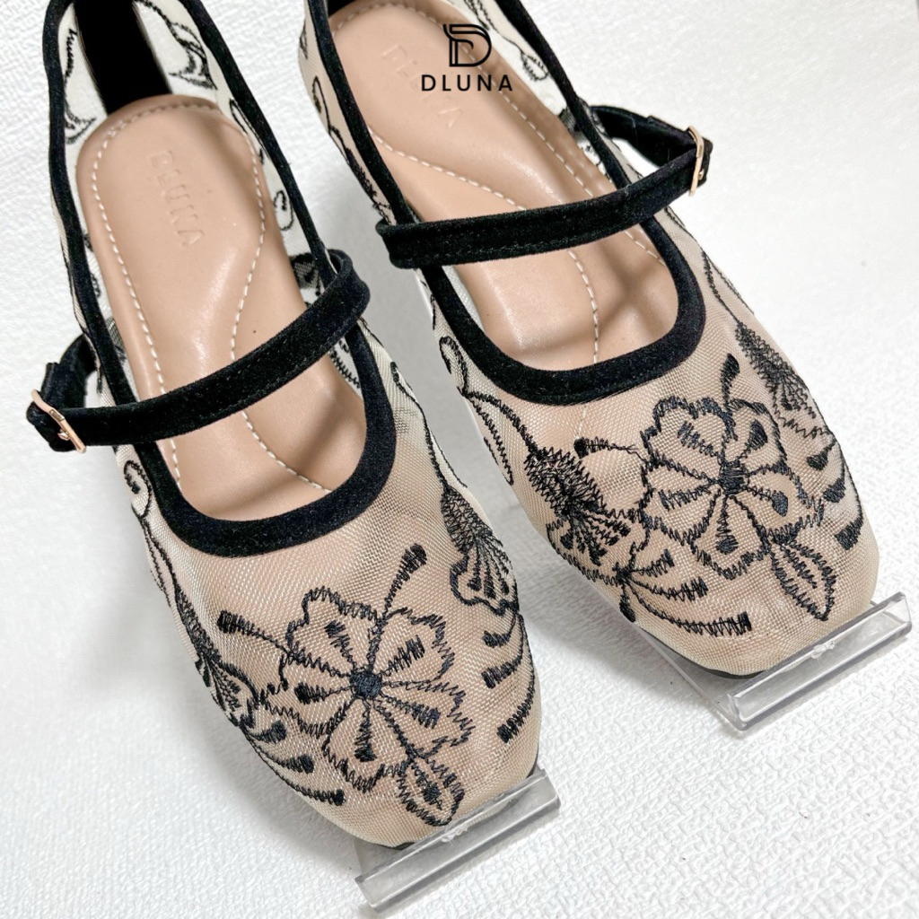 Dluna - [New Product] Naomi Flatshoes Hak 1 cm | Flatshoes Bordir Jaring Transparan Gesper Aktif