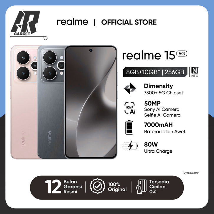 [Mall]realme 15 5G 8GB+10GB* | 256GB (Dimensity 7300+ 5G Chipset | 50MP Sony AI Camera | 50MP Selfie AI Camera | 7000mAh