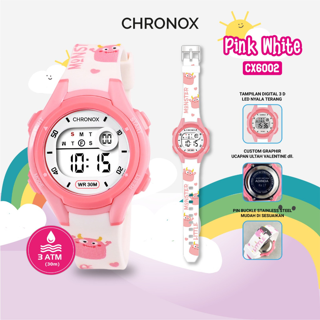 CHRONOX CX6002 - Jam Tangan Anak Digital Anti Air Waterproof Sporty Fashion [Bisa Custom Nama]