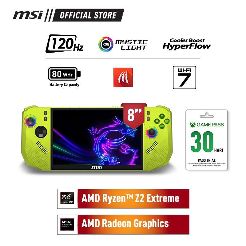MSI CLAW 8 RYZEN Z2 EXTREME 24GB 1TB W11 8.0FHD+ 120HZ 100SRGB